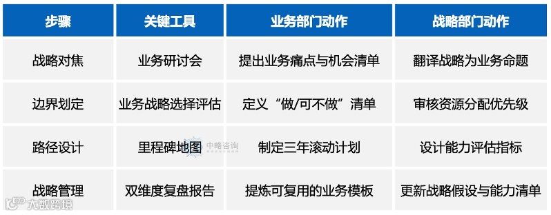 将“十五五”规划从宏伟蓝图转化为企业实实在在的增长动能,从顶层落实实际的业务执行,是一项系统工程。核心在于要做好从顶层战略到业务场景的战略解码、聚焦业务边界的划定,构建战略与经营业务融合的管理机制: