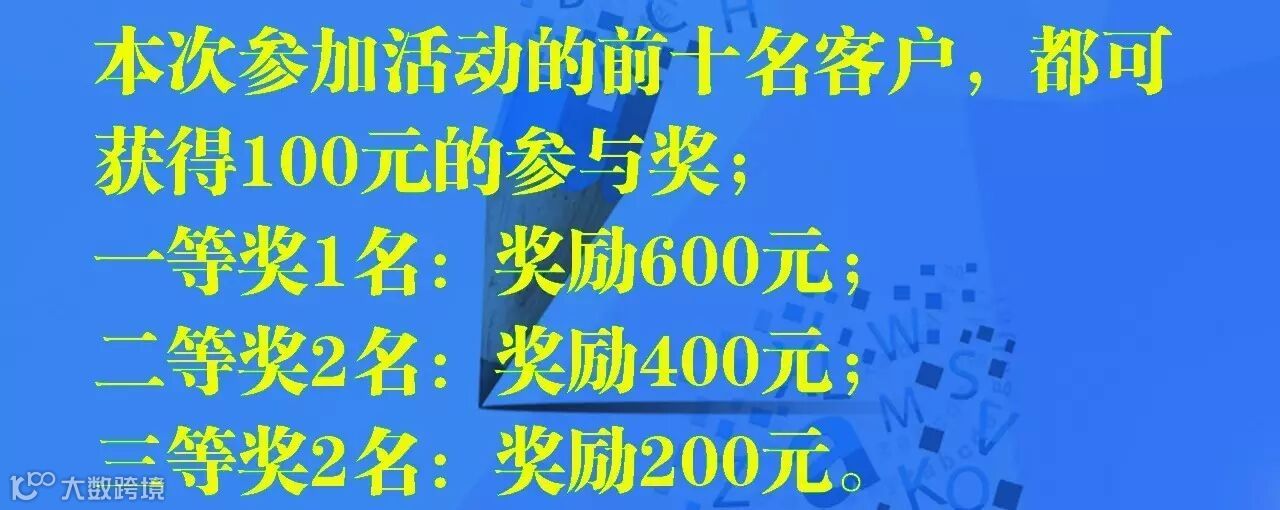 参加本次活动的前10名客户,都可以获得100元的参与奖;