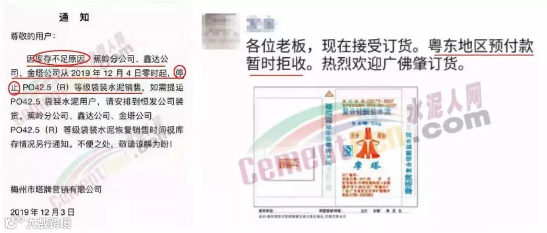 11月中旬,广东某经销商发通知称,粤东地区预付款暂时拒收。提前给钱也没水泥卖了!