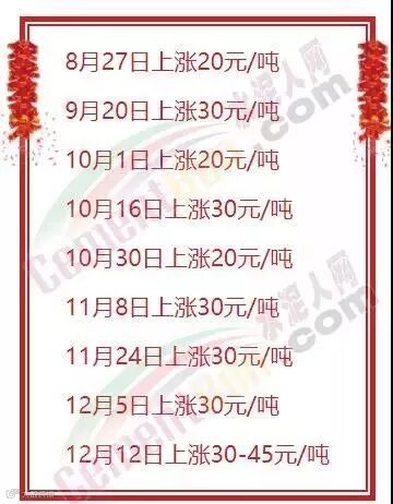 以上可见,水泥涨价长达4个多月 据了解,华南广东、广西区域的涨价一直在继续。部分已经已经连续上调7-8次了,累计涨价已经接近200元/吨了。这轮涨价自8月开始起到目前长达四个多月的时间,依据目前的情形看,这波涨价将要持续到春节前后了。近两个月以来,各区域水泥价格都到达到历史峰值。累计涨价近300元/吨,近年罕见 福建区域部分水泥企业八月下旬至今9轮连涨,累计涨价达240元/吨— —255元/吨。