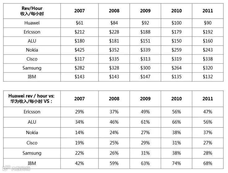 2012年,电邮文号【2012】019号文件公布了华为和竞争对手的效率比较。