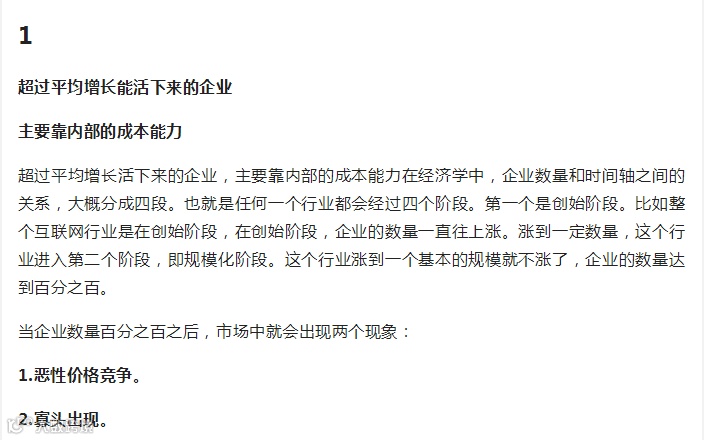 就像今天我们看一些手机厂商,它的手机的确做得非常好,但还看不到盈利,说明综合成本能力还不够。如果这个行业继续这么走下去,再出两年就会发现有人一定会被淘汰。