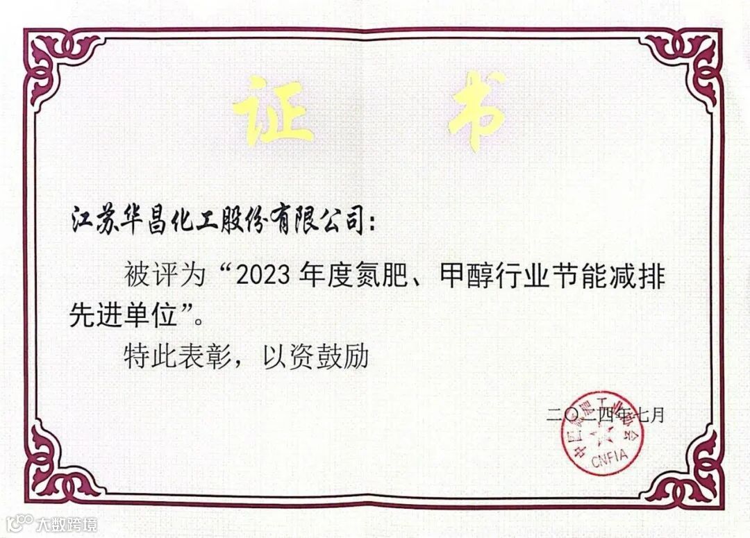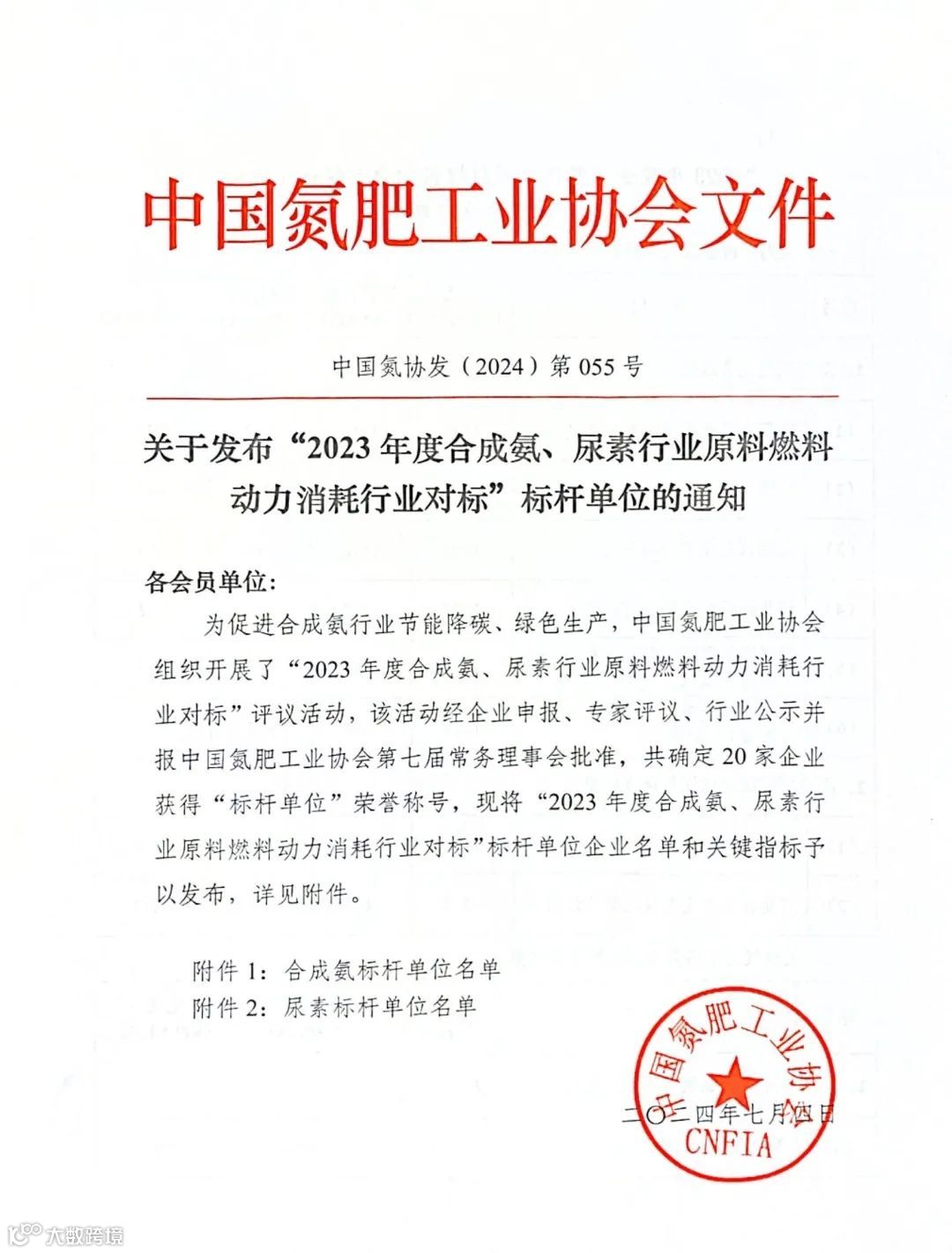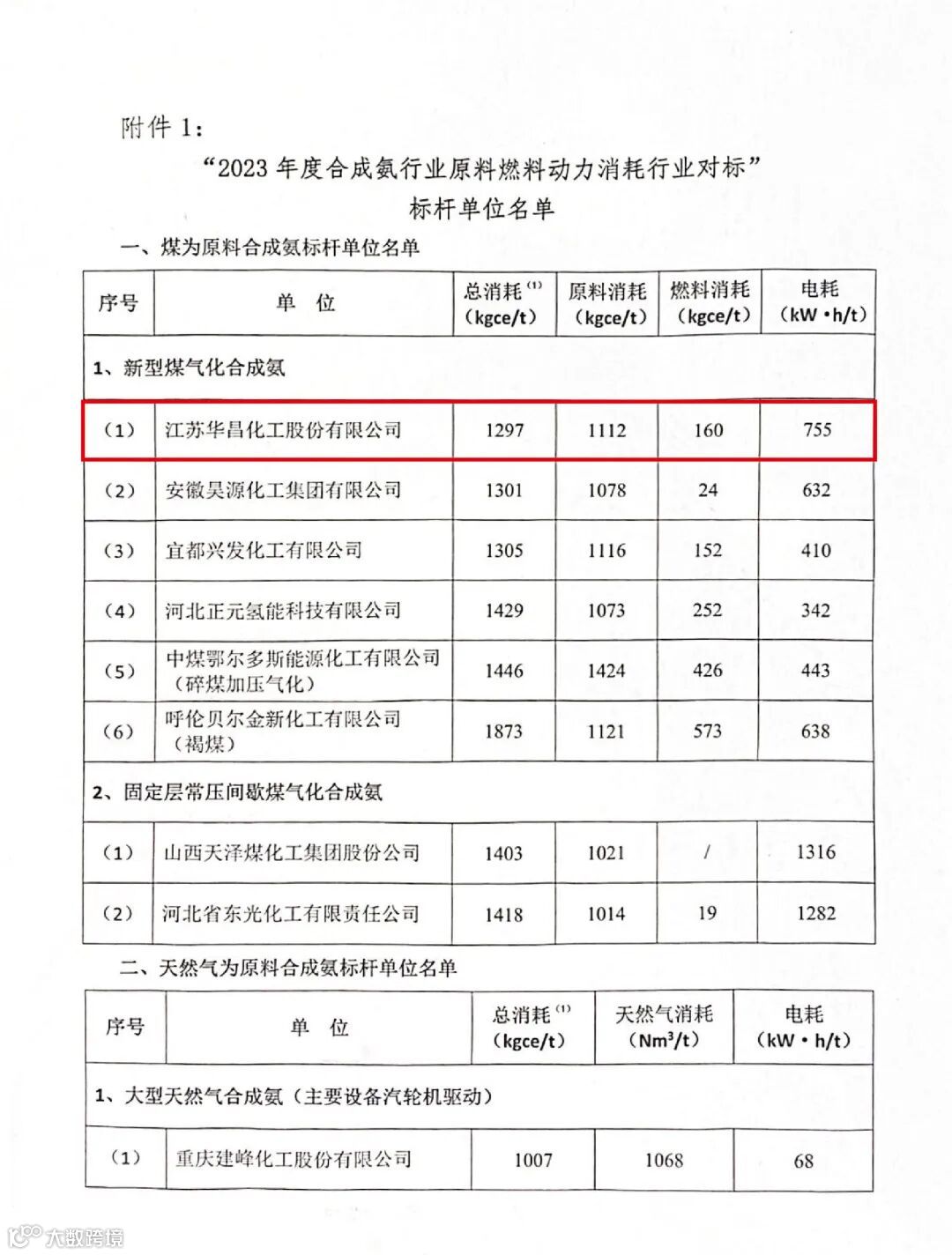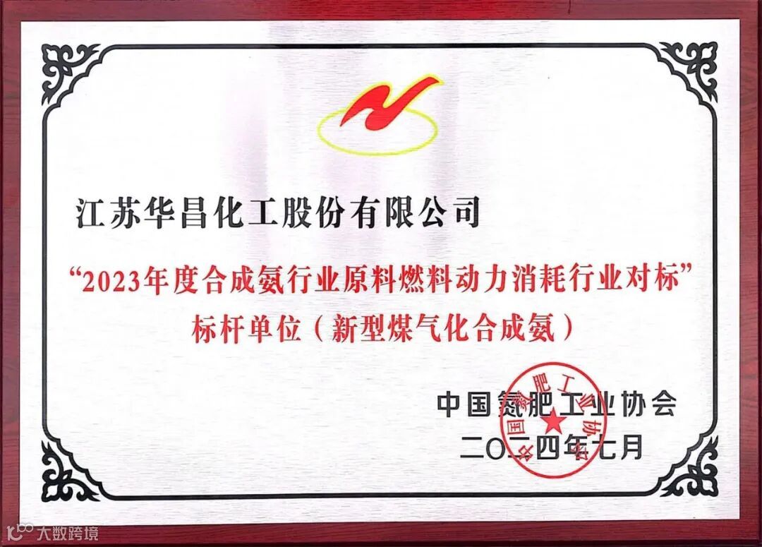 为促进合成氨行业节能降碳、绿色生产,中国氮肥工业协会组织开展了“2023年度合成氨、尿素行业原料燃料动力消耗行业对标”评议活动,经企业申报、专家评议、行业公示并报中国氮肥工业协会第七届常务理事会批准,确定江苏华昌化工股份有限公司获“标杆单位”荣誉称号。华昌化工以总消耗1297千克标准煤的成绩获评“2023年度合成氨行业原料燃料动力消耗行业对标”标杆单位(新型煤气化合成氨)第一名。