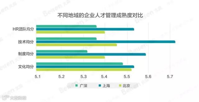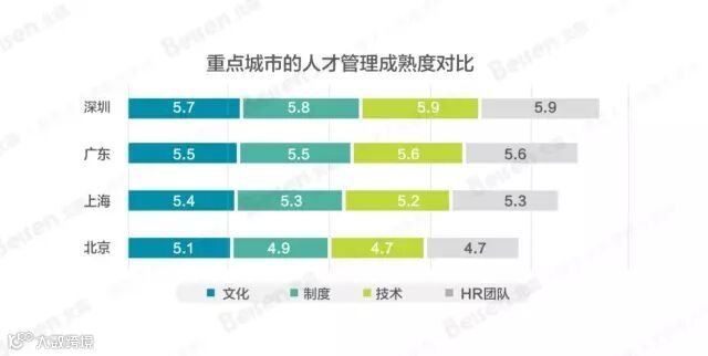 今年报告显示,华东地区领跑全国人才管理成熟度,并且深圳的人才管理成熟度优势较为明显,北京成熟度残忍垫底。难道真的是雾霾导致无心工作吗?