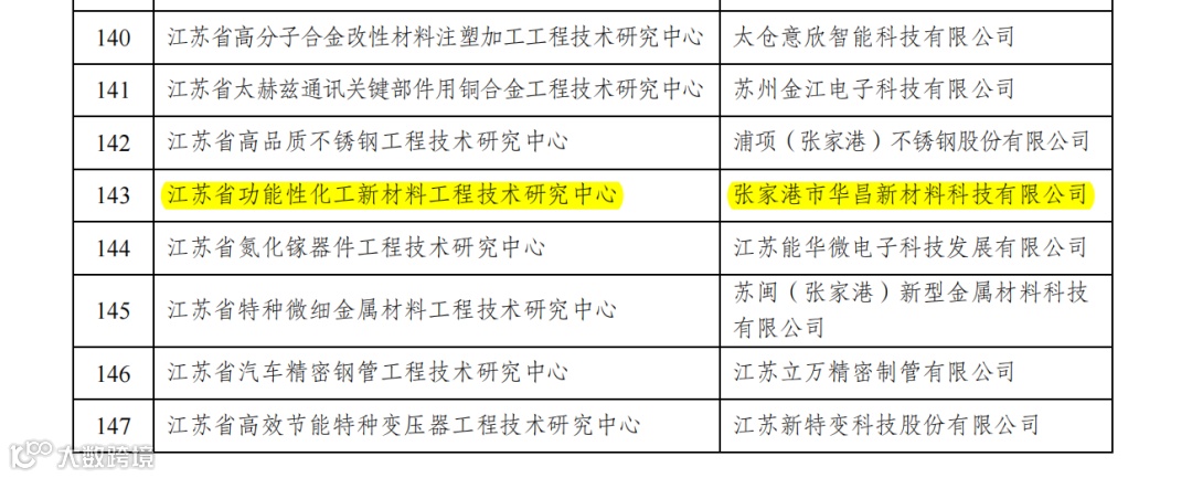 张家港市华昌新材料科技有限公司创建的江苏省功能性化工新材料工程技术研究中心,近日成功通过江苏省科技厅认定。该荣誉的获得,是科技主管部门对华昌新材料公司科研创新机制、科研团队水平、科技创新能力、科研成果转化能力等综合实力的高度认可,同时也是对公司的鼓励和鞭策,对科技创新提出了更高的要求。