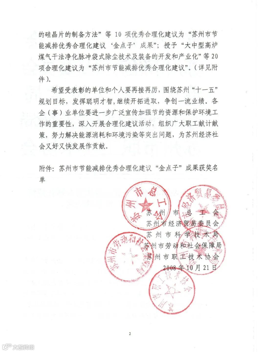 2008年10月,公司在绿色发展领域实现重要突破,获得苏州市节能减排“金点子”成果奖,并在全国石油和化工行业节能减排促进大会上被授予“节能减排先进单位”称号。这两项荣誉分别从基层创新与行业标杆两个维度,系统展现了公司将节能减排理念深度融入研发、生产与管理的成果,标志着企业构建起技术创新与管理优化双轮驱动的绿色发展体系,为在日益严格的环保政策与市场竞争中赢得先发优势奠定了坚实基础。