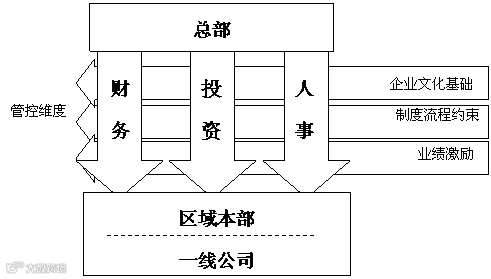 1,投资。投资决策权在总部,一线公司要买任何一块地,一个项目,都必须报由总部,需得到总部的同意方可动手;