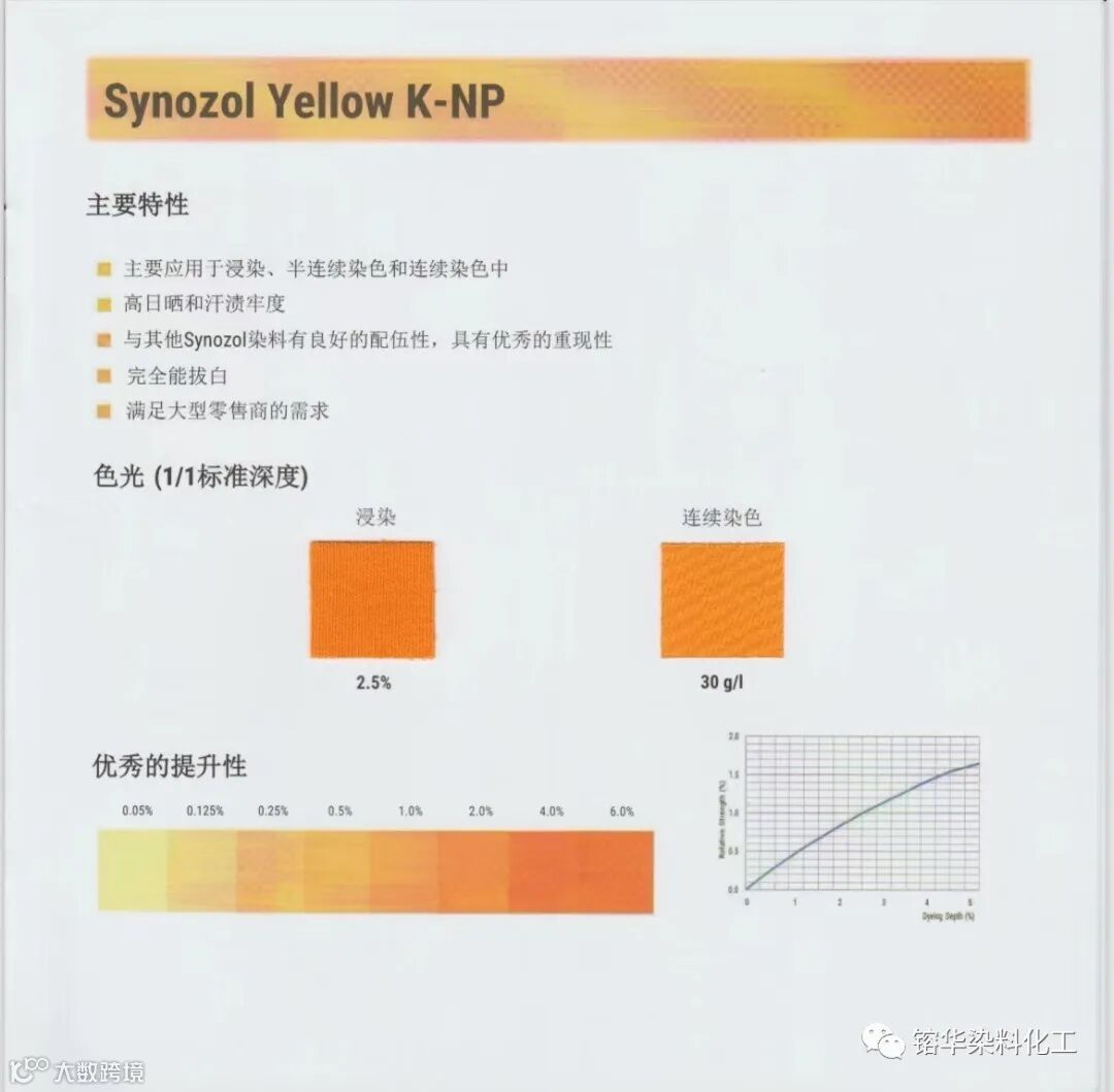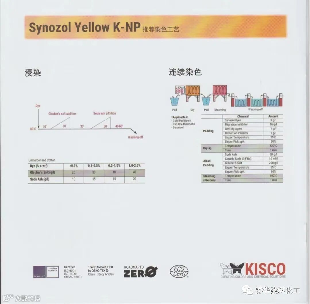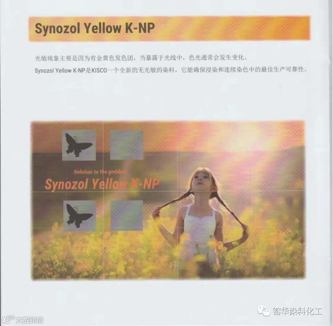 synozol Yellow K-NP是KISCO一个全新的无光敏的染料,它能确保浸染和连续染色中的最佳生产可靠性。