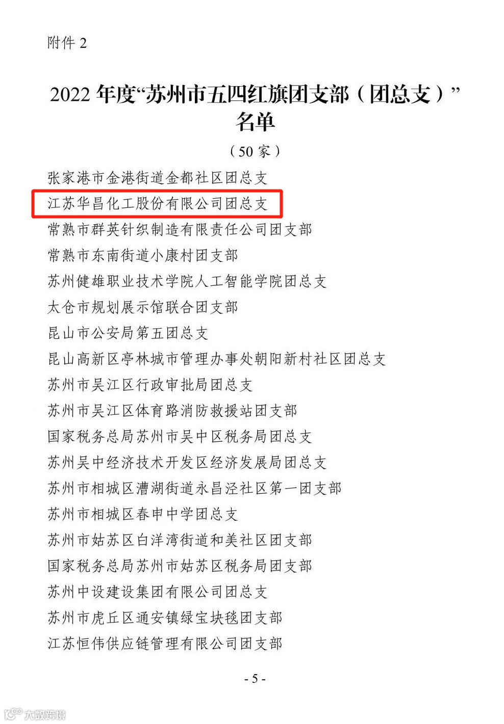 为鼓励先进、树立榜样,进一步激励苏州市各级团组织开拓进取、创先争优,共青团苏州市委公布了市“两红两优”名单,江苏华昌化工股份有限公司团总支获评苏州市五四红旗团总支。