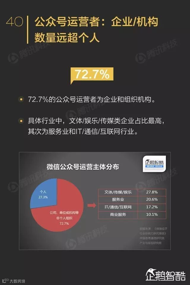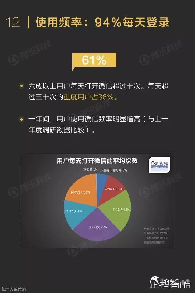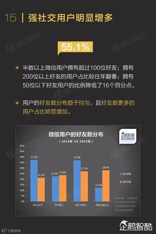 去年年初,企鹅智酷发布了首份《微信数据化报告》。报告上线后,它的英文版本就获得了超过10万阅读量。中文版的转发转载和引用,几乎无法统计。