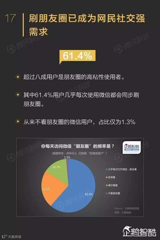 拥有200位以上好友的微信用户占比最高,61.4%用户每次打开微信必刷“朋友圈”