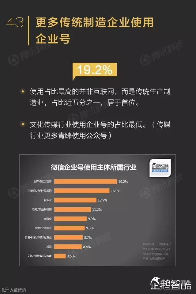 微信企业号运营者调研显示,传统制造业占比最高