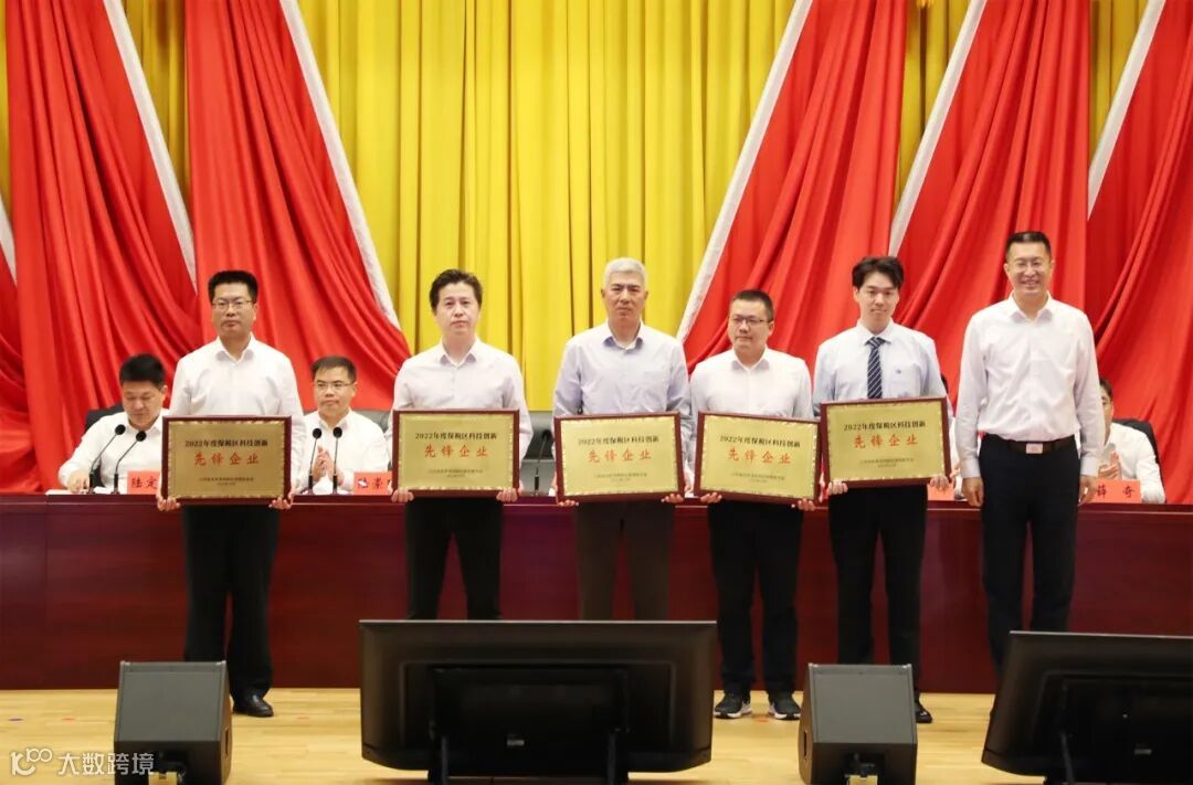 会议总结了保税区企业科技创新工作成果,部署了下阶段工作重点,并为科技创新先进企业颁奖。华昌化工在2022年度保税区企业研发费用税前加计扣除排名中名列前茅,市委副书记、副市长李炳龙为“2022年度保税区科技创新先锋企业”授牌,副总经理李长胜代表公司上台接牌。