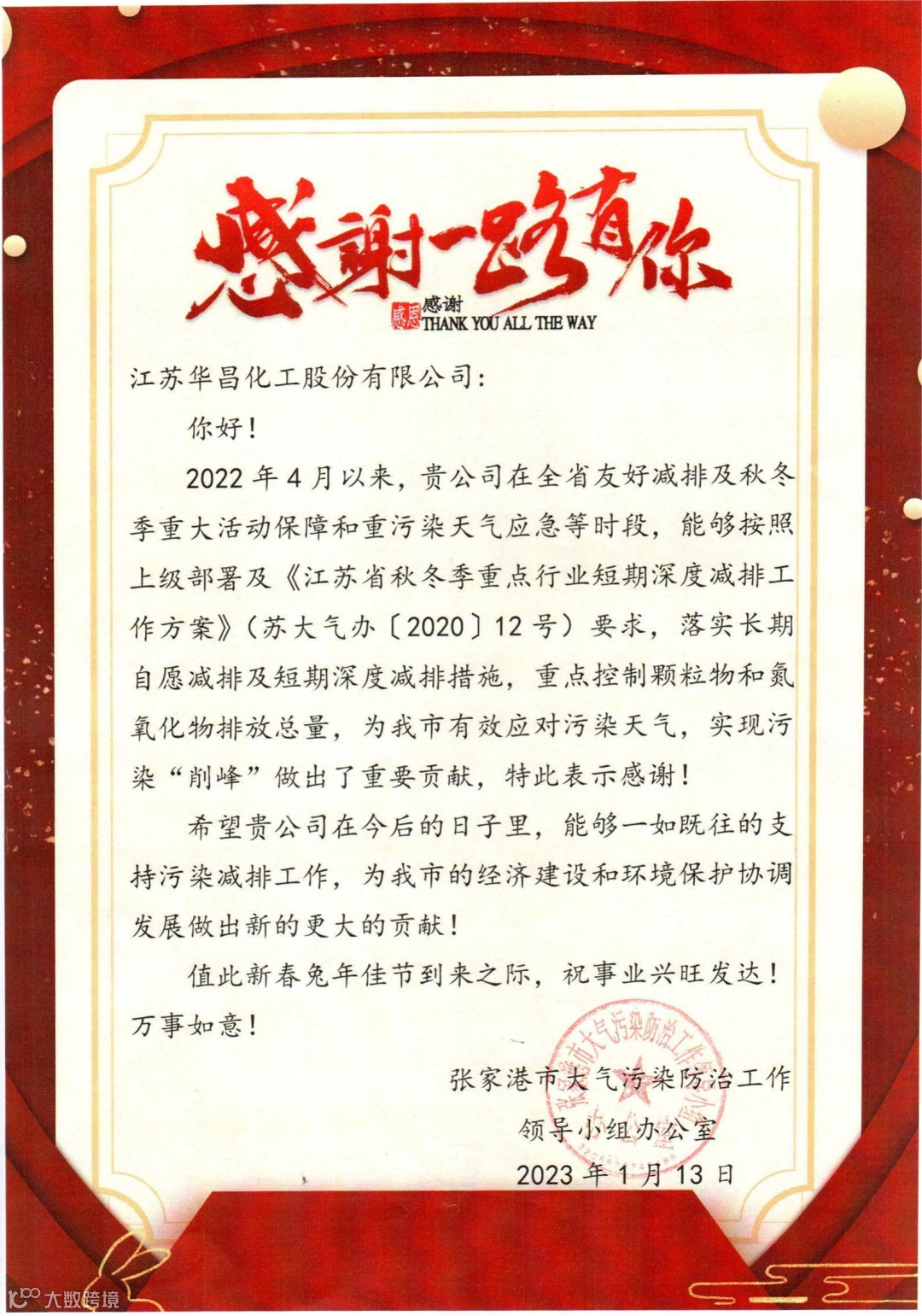 华昌化工积极落实长期自愿减排及短期深度减排措施,重点控制颗粒物和氮氧化物排放总量,在达到规定指标要求的基础上,进一步压降烟气排放浓度及排放总量,为苏州市有效应对污染天气,实现污染“削峰”做出重要贡献。
