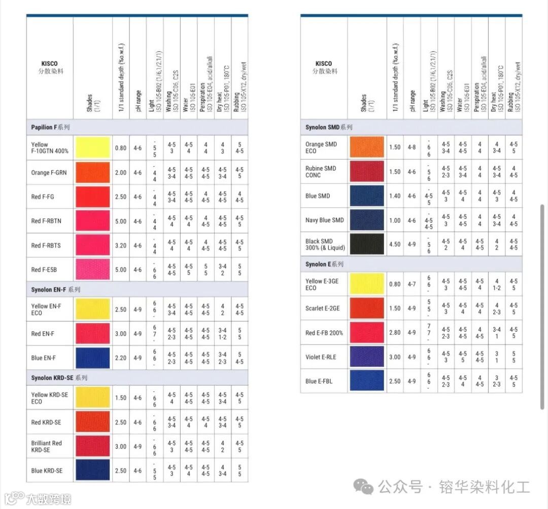 KISCO的目标是生产高质量的产品,确保均匀的颗粒尺寸和优良的分散性 能。该产品可通过多种染色工艺应用于100%涤纶织物和混合物。