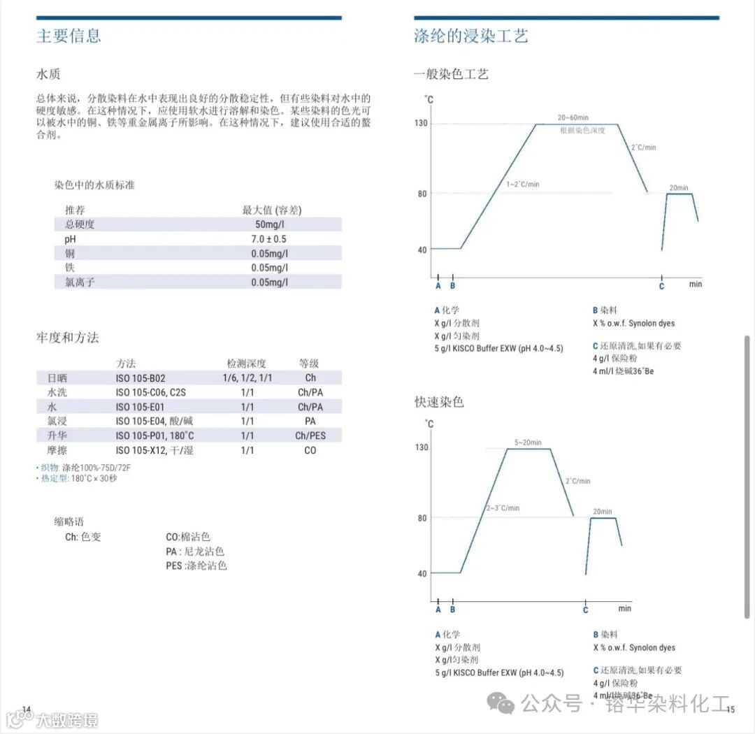 Synolon EN-F和KRD-SE染料推荐使用快速染色工艺。