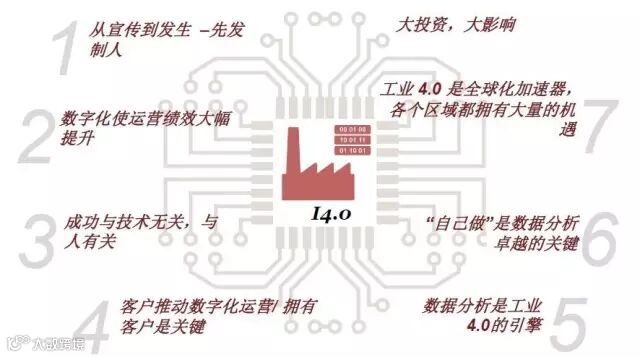 工业4.0时代,客户是价值链、产品和服务变革的核心。制胜企业需要拥有相应的平台和分析能力,以掌控对客户的接触。数据分析是成功实施工业4.0必须具备的先决条件,自身具备先进分析能力将是一项关键的竞争优势。人才和知识产权必须内部自有,基本常规工作可以外包。