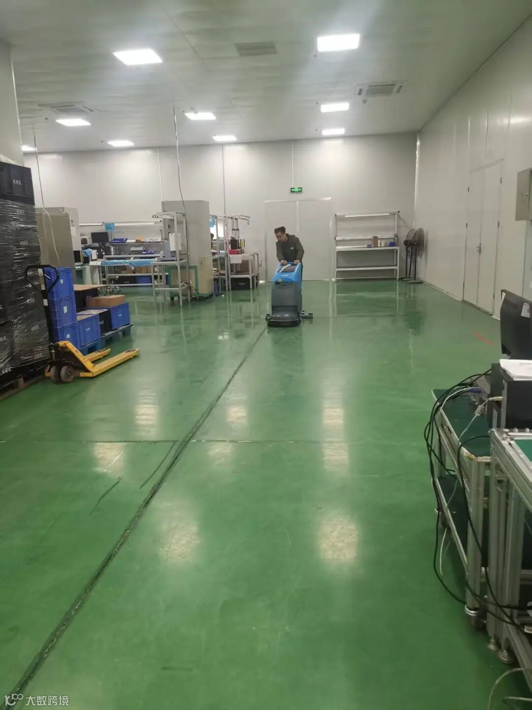 在交付现场,工作人员分别在工业车间、室内公共区域演示了洗地机的操作:
