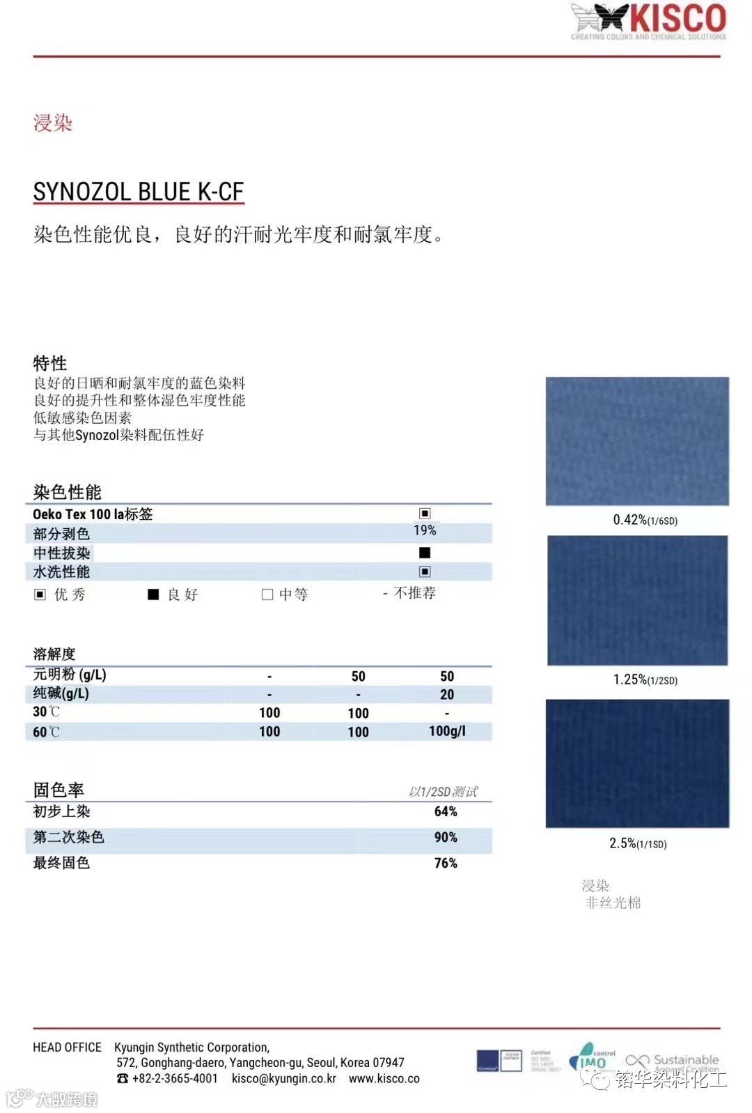 导读:K-CF具有最佳日晒及汗光牢度 ,最佳耐氯牢度,最佳湿摩擦牢度,适合零售商耐洗要求。