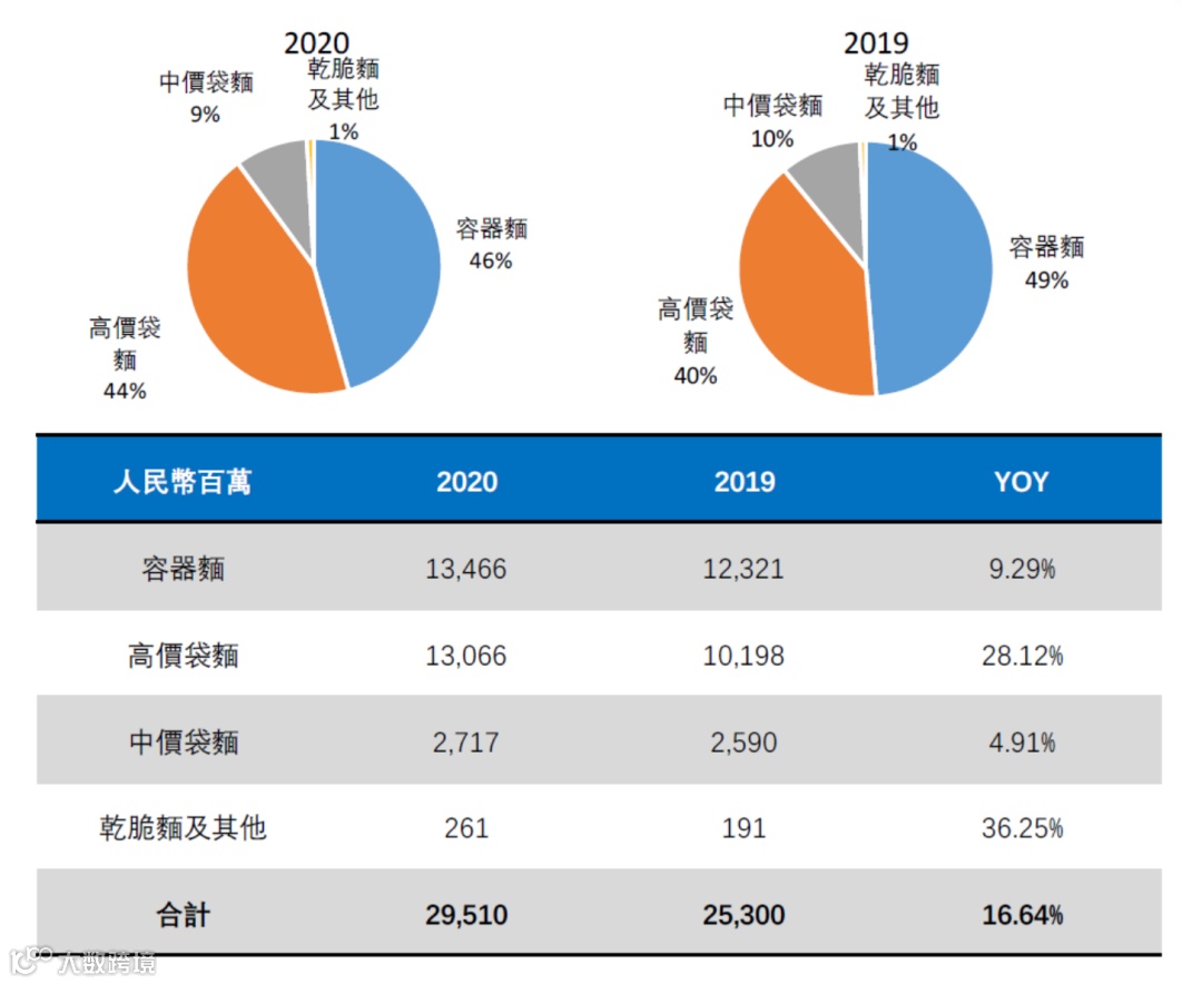 统一表示,2020年方便面行业上半年需求激增,增速明显,下半年回归常态。2020年,统一方便面业务录得90.55亿元收入,较去年同期增长7.2%。