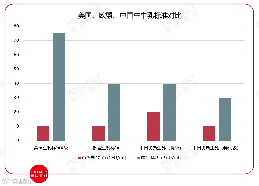 2018年2月,生乳、巴氏杀菌乳、灭菌乳、复原乳检验方法共4项白奶国家标准发布讨论稿。其中,首次提出生乳分级标准,被视为中国生乳标准向欧美真正接轨的关键一步。2019年11月,在首届中国奶业新鲜峰会上,《特优级生乳》、《优级生乳》、《优质巴氏杀菌乳》三项团体标准发布。尽管不是国家标准,但依然体现出中国乳业整体向国际看齐的决心。