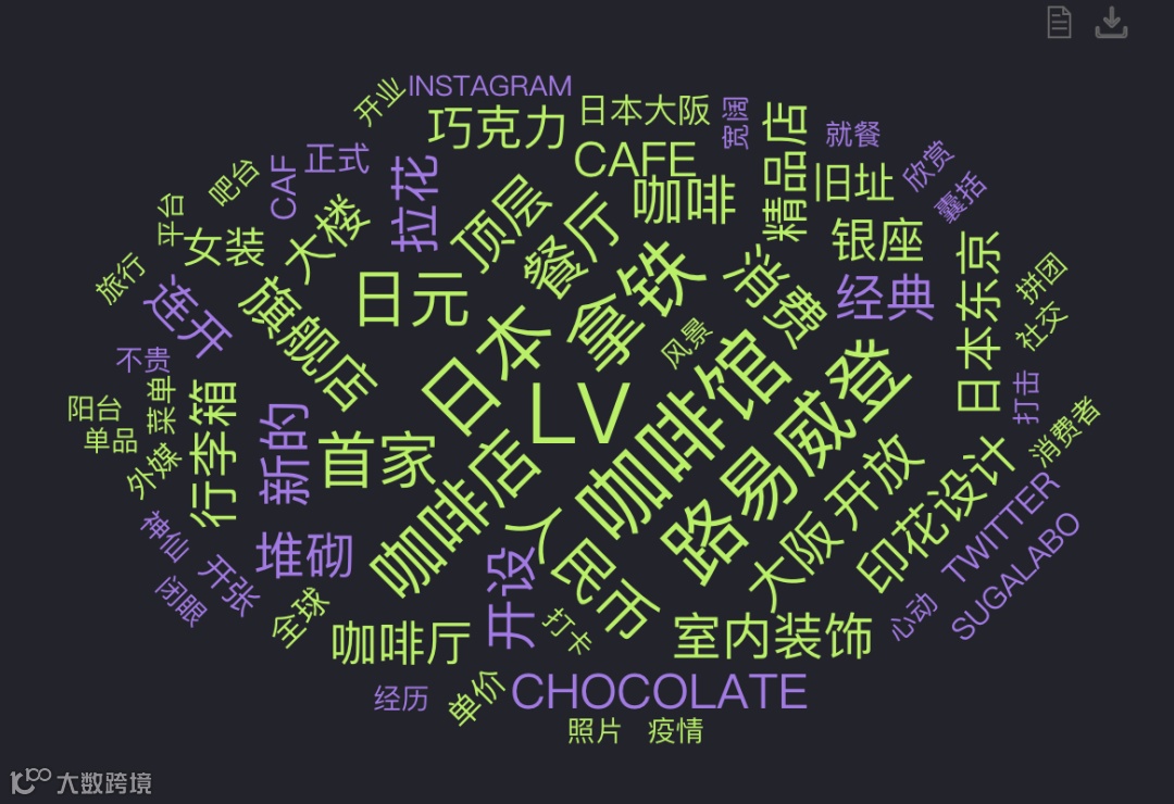 根据时趣洞察引擎显示,网友们除了对LV咖啡馆本身的讨论以外,也有“风景、消费、欣赏、神仙、打卡、社交”等关键词,可以看出,相对于普通的咖啡馆而言,LV的咖啡馆没有浓浓的商务办公风,反而多了一些旅游场景、偏重生活品质体验的消费特性。