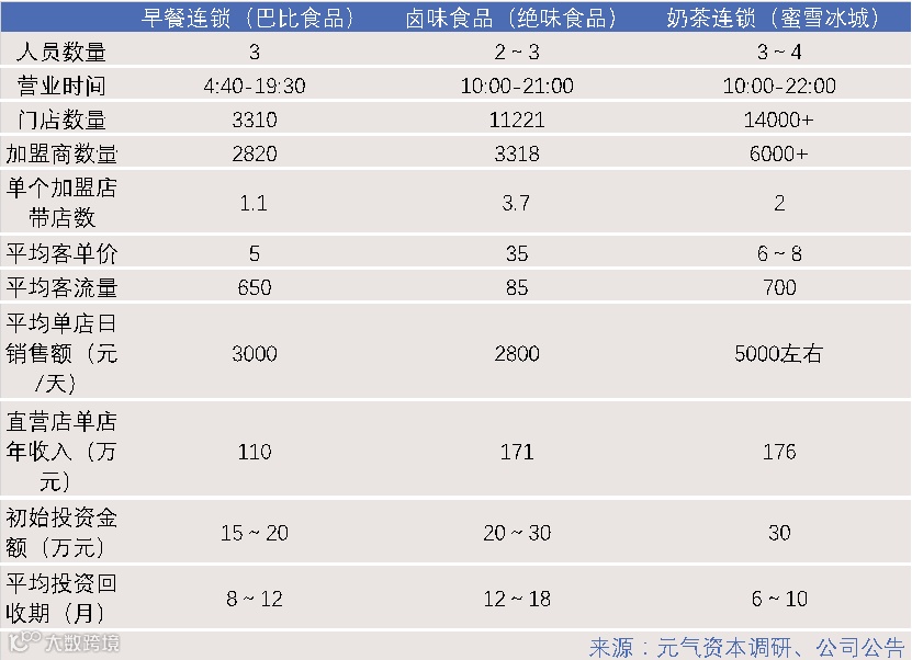 为了更直观的比较“连锁业态”下不同公司的表现,我们选择了业态里较为成熟的两种模式进行对比:卤味食品与奶茶。