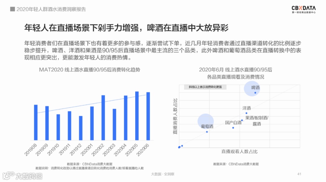 。《报告》显示,疫情发生后,酒水直播从3月开始出现强势“反弹”,90、95后观看人数占比提升。