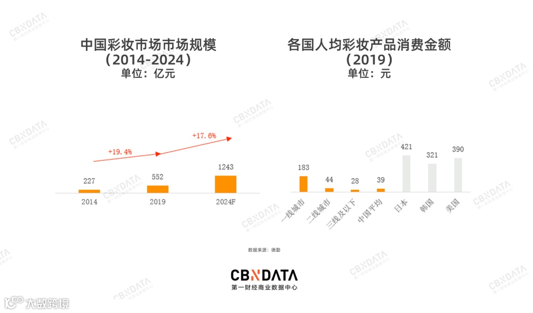 新型美妆集合店有更多国产彩妆品牌入驻,这赋予门店以更强的体验属性。而中国彩妆市场无论在人群还是地域层面都存在很大增量空间,也让品牌在线上的运营、扩张压力部分找到了出口。