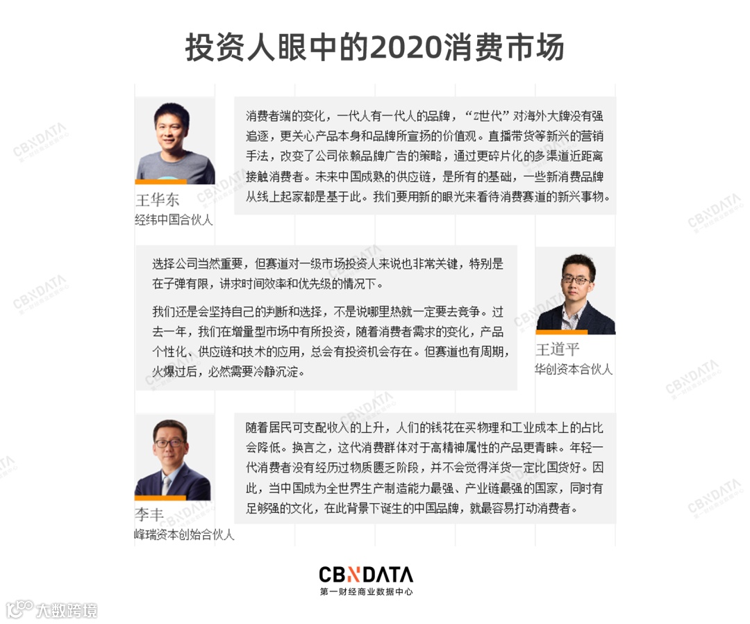 为了挖掘市场、资本背后的深层逻辑,CBNData消费站专程采访了来自经纬中国、华创资本、峰瑞资本等7家创投机构的资本操盘手。从他们的观点中不难发现,消费领域风向的改变,归根结底在于“人”的换代、“产”的积累和“媒”的流变。