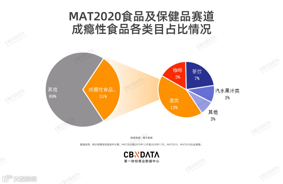 酒精、茶饮、咖啡等成瘾性食品相关的投融资事件,在食品及保健品赛道的占比高达31%。疫情带来的情绪焦虑和压力,一定程度上增加了人们消费成瘾性食品的可能性——后者能产生所谓的“快乐吗啡”。
