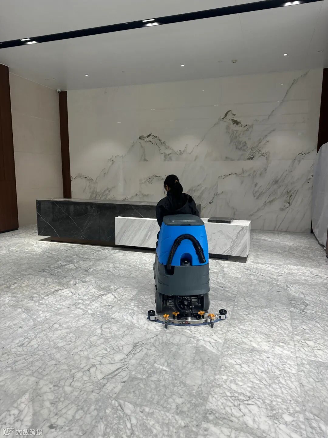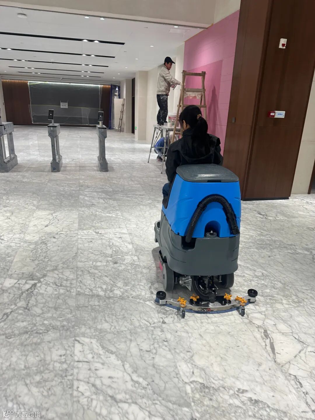 周末配送丨驾驶式洗地机冒雨上岗就业