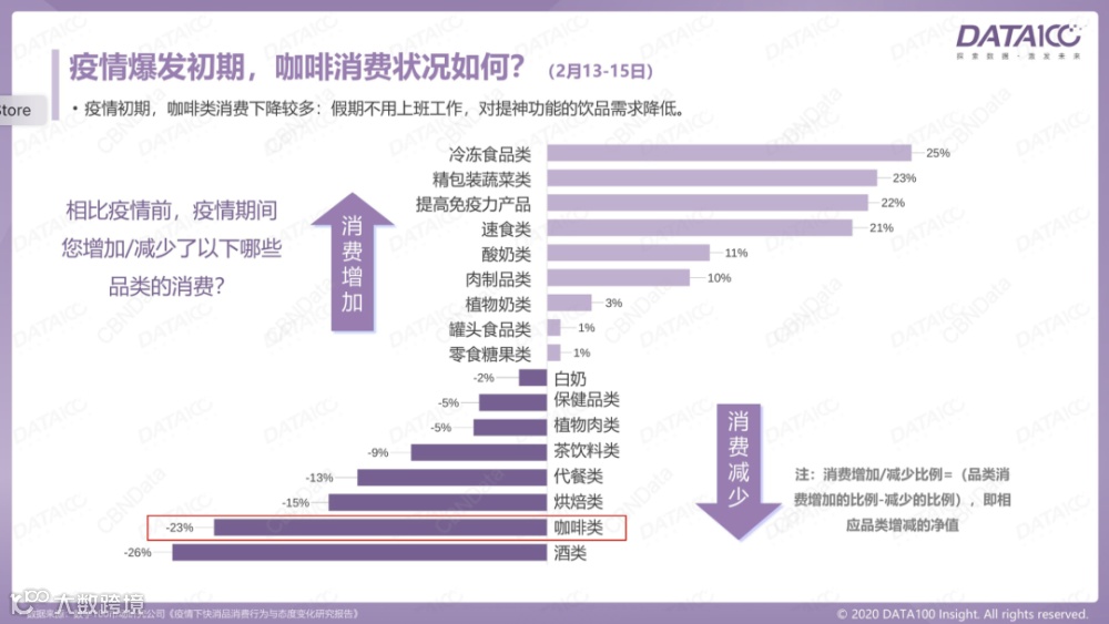 第一,数字100这份报告也提到了调查结果和疫情初期大部分人处于休假状态有关。咖啡馆(和部分便利店)很多选址在办公楼,每年春节喝咖啡(尤其是现调咖啡)的人可能本身就是回落的。