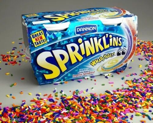 达能旗下的Sprinklins酸奶历经数代更迭,至今仍是儿童喜爱的酸奶类型。图片来源:resetera