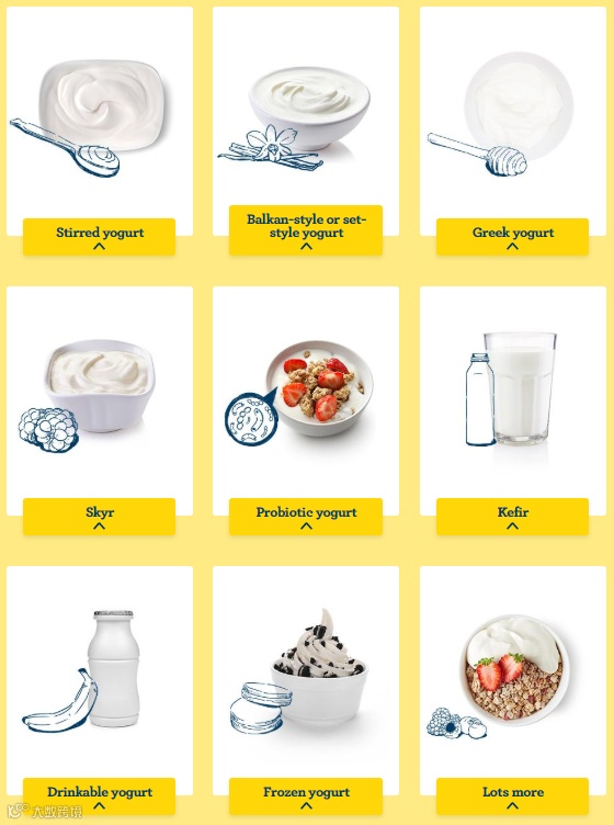 美国酸奶的不同类型。图片来源:dairyfarmersofcanada