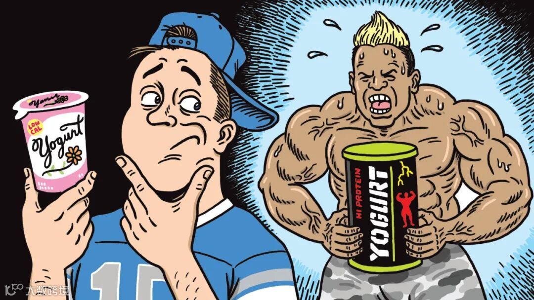 专注于高蛋白这个卖点,使得过去酸奶强调营养和美妙口感,聚焦于女性和儿童群体的定位开始转向男性,转向所有希望强身健体的人群。彰显“阳刚之气”的黑色包装酸奶,更像是增肌蛋白粉的变体,受到健身人群的青睐。
