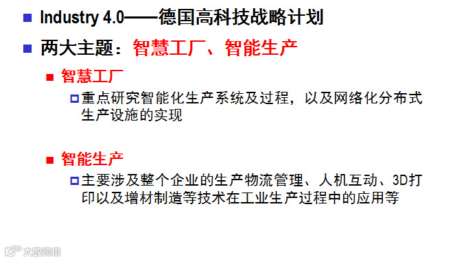 工业4.0——德国高科技战略计划首位。