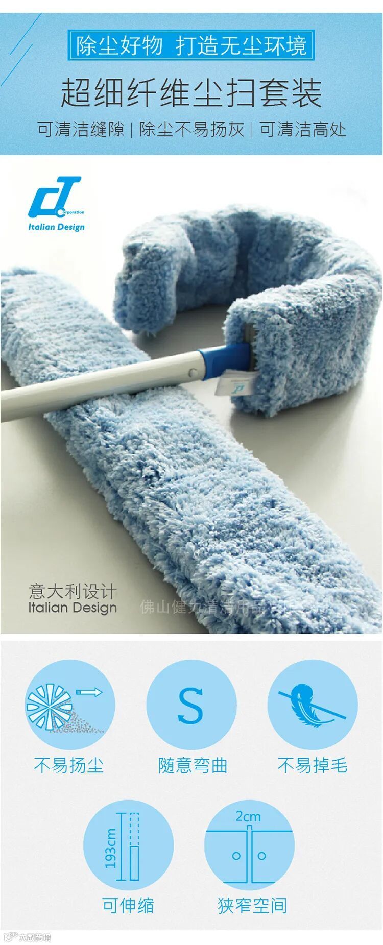 (3)尘扫:用于清理收集各种表面的浮尘,特点是吸附性好,不易产生扬尘。