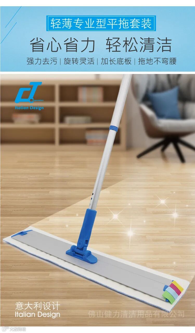 (5)拖把:圆形拖把、扁形活动式拖把(排拖)、除尘拖把(尘堆)、平拖。