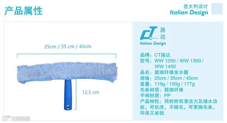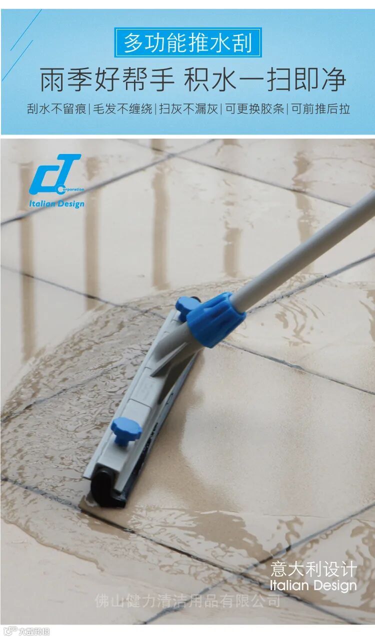 (2)推水器:主要是用来清洁厨房、阳台、走廊等地面水渍,也可用来清洁地面的灰尘和毛发等。
