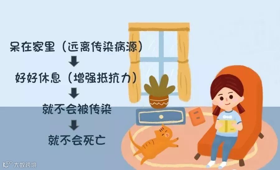 这时一定要学会识别内心的自动的负的想法,并且积极运用自我暗示。要在意识层面告知自己并强化:“专家说了,我只要呆在家里(远离传染病源)—好好休息(增强抵抗力)—就不会被传染—就不会死亡!”