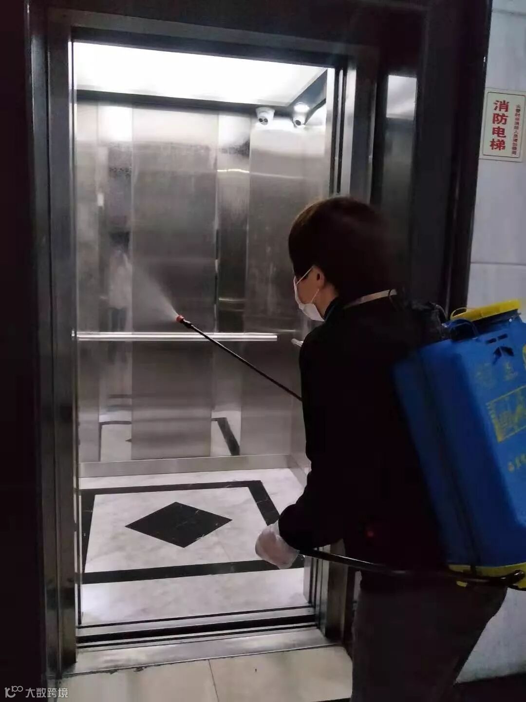 对于公共区域的电梯,电梯使用单位对电梯轿厢、按钮、厅轿门、自动扶梯扶手等部位进行消毒和清洁,一般情况下每天不少于两次,其中商场、超市、医院等人员密集重点场所的电梯,要求每2小时消毒1次,如遇特殊情况则随时进行,并在显眼位置标注消毒情况。当然,所有人员出门及工作中都需要佩戴口罩。