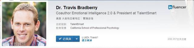 领英用户(LinkedIn Member)特拉维斯·布拉德伯里(Dr. Travis Bradberry),TalentSmart管理咨询师。