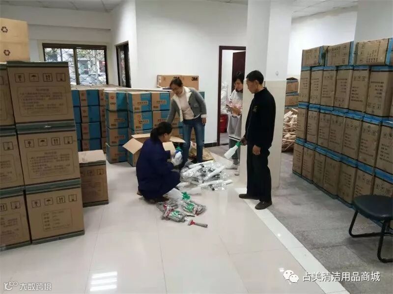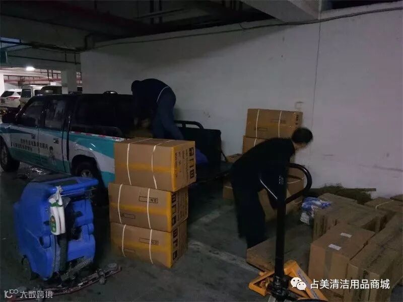 同时另一路占美公司的员工们也在准备着金华客户急需送的清洁药剂和清洁设备。