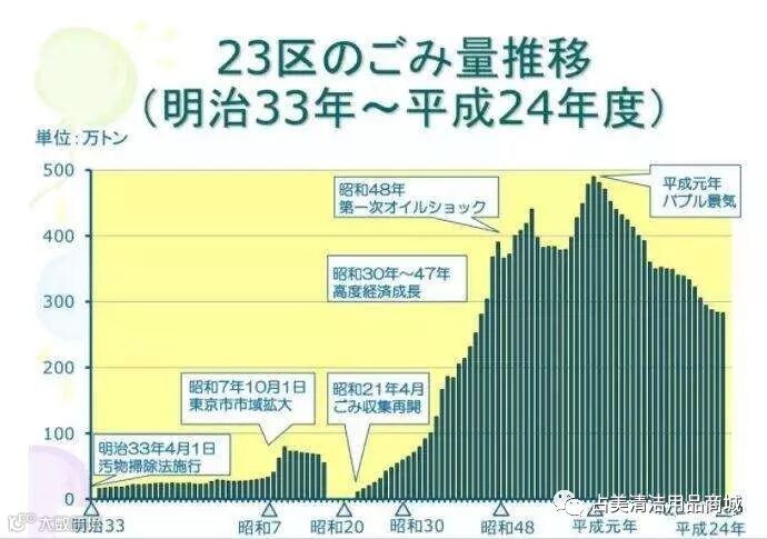 东京 23 区垃圾量的变化,从 1955 年(昭和 30 年)开始激增