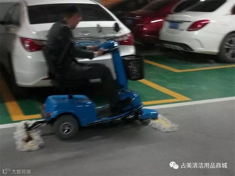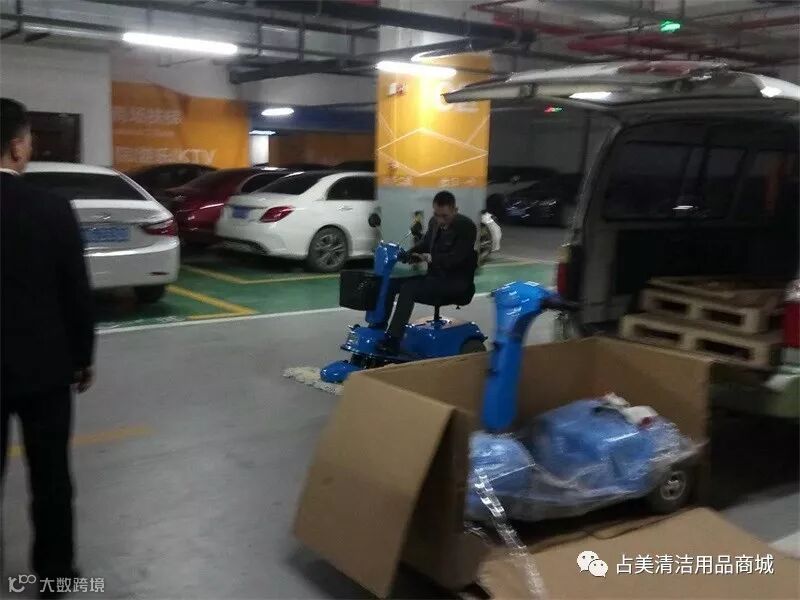 义乌某公司的客户熟练的操作驾驶式尘推车。