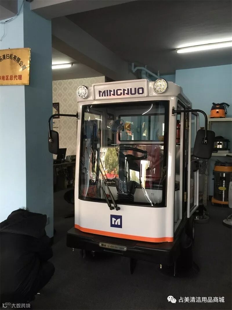 明诺驾驶式扫地车正在工作中。