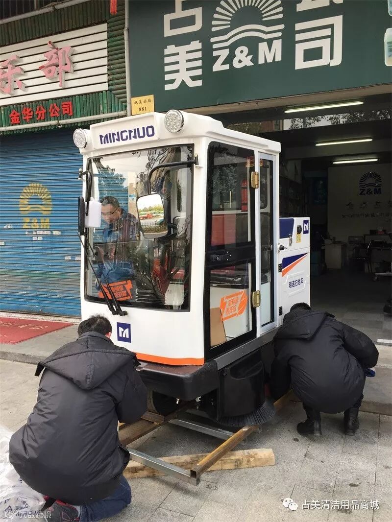 本周周六,占美公司的同事们一大早就开始忙碌了起来。因为有一台新的明诺MN-E800FB驾驶式扫地车要加入占美公司大家庭,与“老伙计”们团聚在一起,重新开始一段新的旅程。