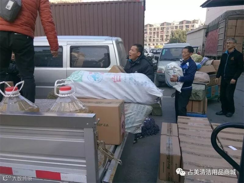 本周周三天气晴朗,一大早占美公司的同事们就开始忙碌了起来,因为占美公司优秀的销售员成功为丽水万地的客户提供一批急需用的清洁用品。