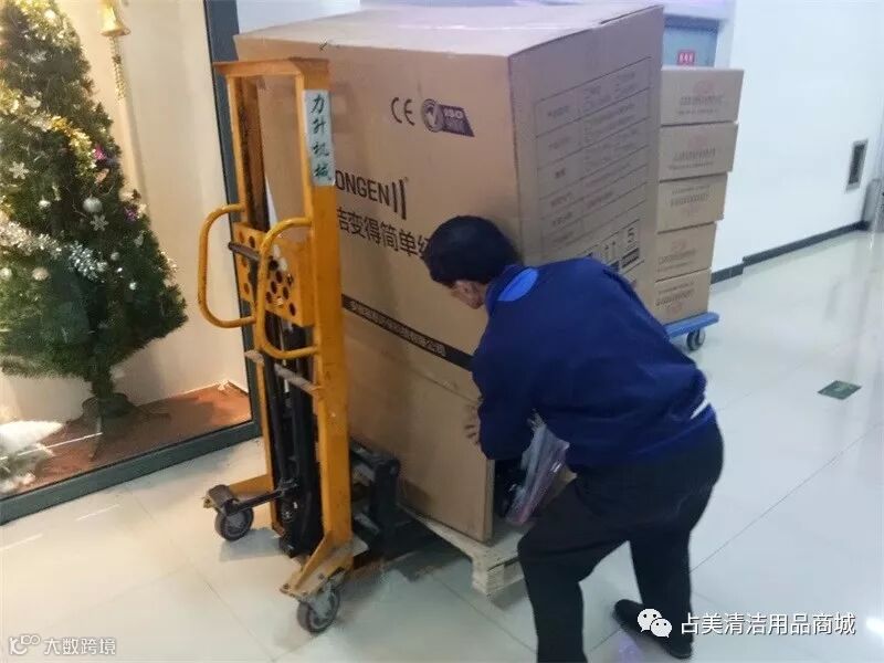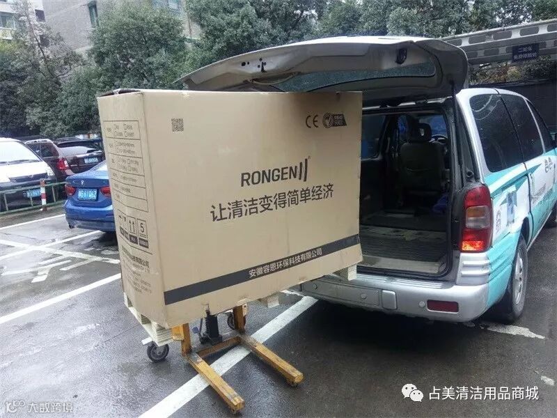 我们占美公司的同事帮忙把容恩R50B洗地机装上车。